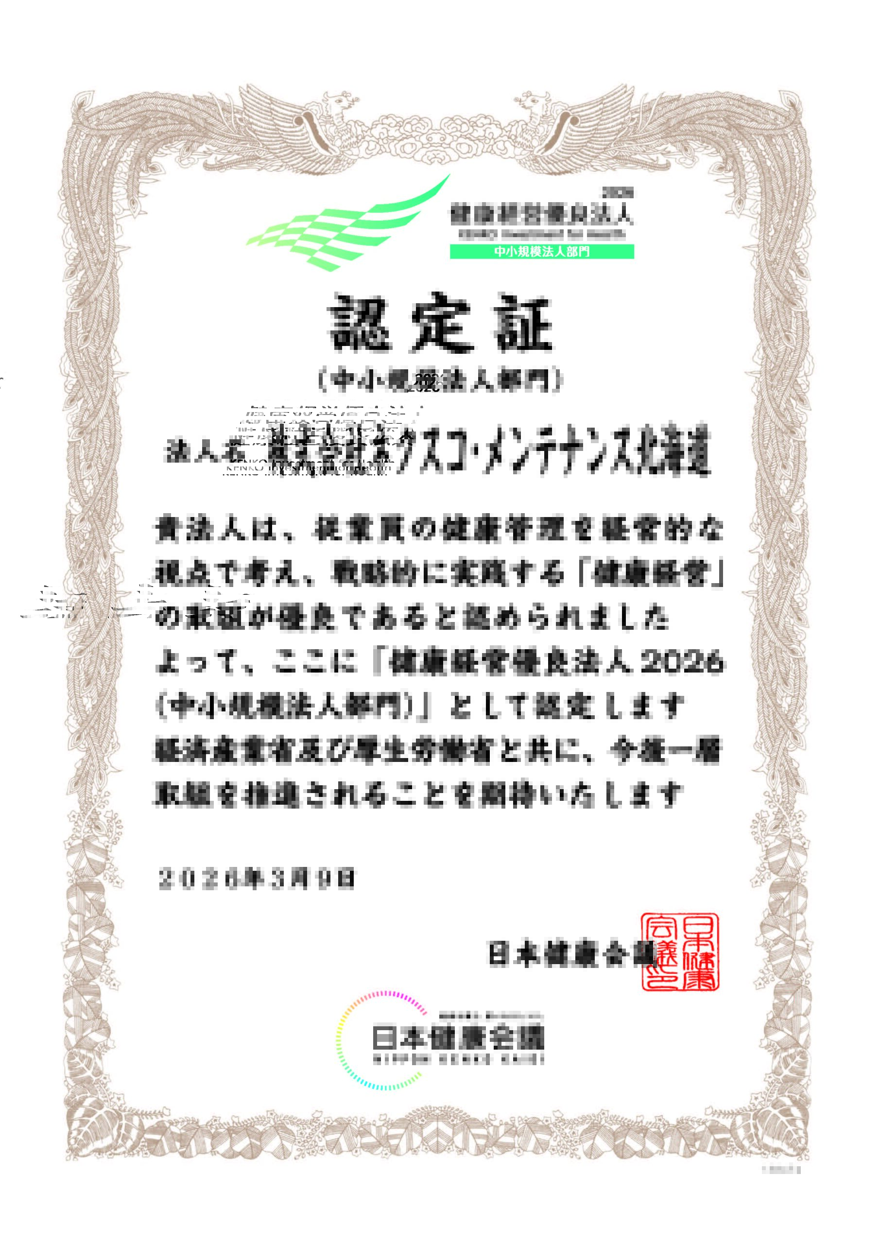当社は「健康経営優良法人2026」に認定されました。